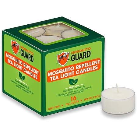 Citronella is the commonly used name for a group of familiar plants best known for insect repelling abilities similar to yarrow. They also have a strong residual scent for up to six months. Mosquito Guard Repellent Tea Light Candles 16 Pack Made with Natural Plant Based Ingredients - Citronella Lemongrass Rosemary Cedarwood Oil- Deet Free.