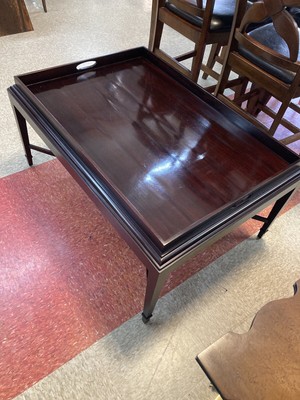 Mahogany is a straight grained hard wood with silky texture ranging in color from dark brown to red. The style is named after a famous cabinet maker Thomas Sheraton who lived between 1751 and 1806.